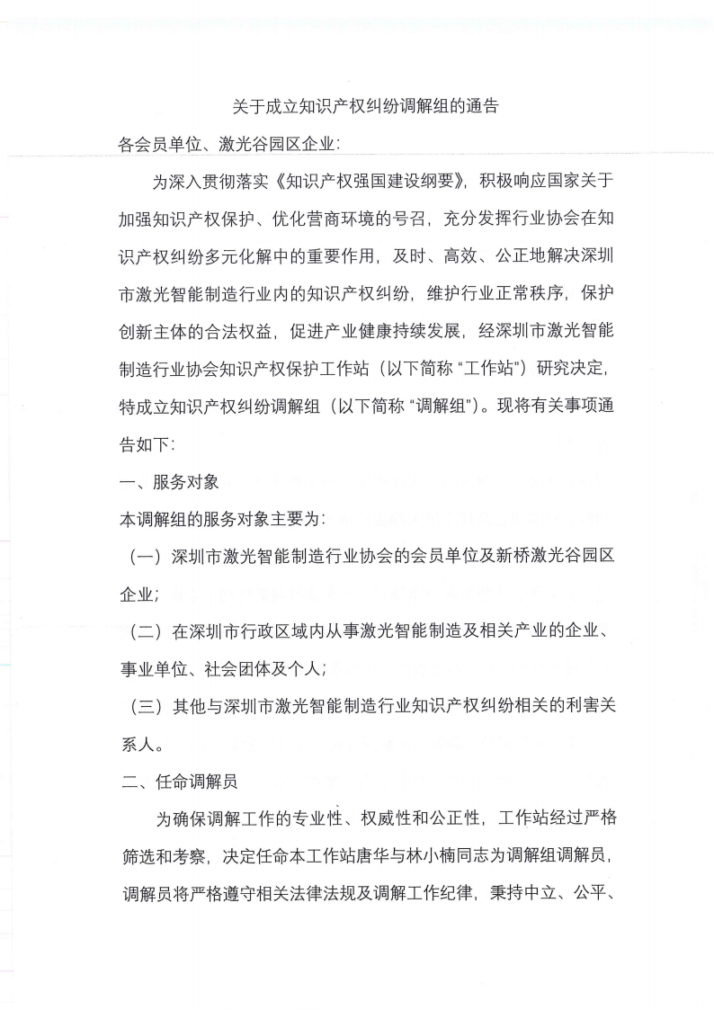 关于成立知识产权纠纷调解组的通告