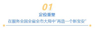 为全面对接粤港澳大湾区、深圳先行示范区、前海“扩区”等国家战略,深层次推动全区经济结构、产业配套、城市功能、城区面貌、公共服务等面向湾区发展大势适配,宝安夯实战略承载力,推动空间重组、格局重塑、定位重构,持续提升开放水平和资源链接能力,为深圳增强大湾区核心引擎功能注入新动能、提供新支撑。